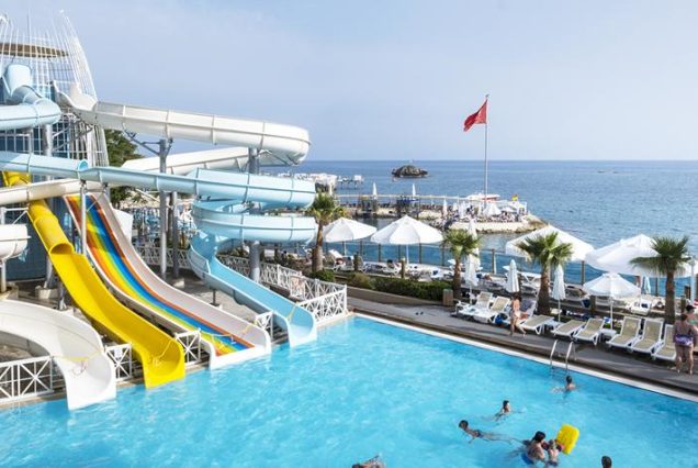 Otelin kendine ait iskelesi vardır. Tesisin kendine özel kum plajı bulunmaktadır. Tesiste manzaranın tadını doyasıya çıkaracağınız , özel kum plaj , iskele , duşlar , soyunma kabinleri ayrıca açık yüzme havuzu , açık jakuzi havuzu , kapalı havuz , çocuk havuzu , aquapark bulunmaktadır. Tüm güneşlenme alanlarında şezlong , şemsiye , minder ve havlu ücretsiz olup , plaj ve havuz kenarındaki loca hizmeti ücretli olarak sunulmaktadır. Mini disco , 4-12 yaş mini club , eğitici & öğretici oyunlar , uyku odası , ve oyun parkı bulunmaktadır.